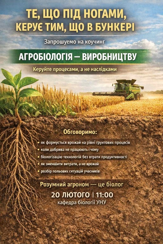 Практична зустріч для фермерів, агрономів та молодих науковців про те, як впливає біологізація сільського господарства на ґрунтові процеси і як їх використати для стабільного врожаю та зменшення витрат.