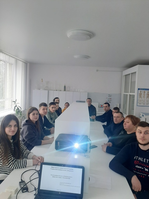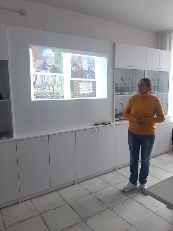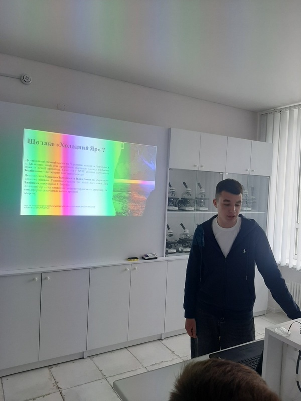 З другого питання слухали доповідь Віталія ЖОЛОБІЦЬКОГО, студента 11 б групи, який презентував результати експедиційної поїздки до Холодного Яру в рамках проєкту Української природоохоронної групи «Охорона природи з використанням ГІС-технологій», покликаного зберегти унікальний першоцвіт – підсніжник складчастий, ареал якого в Україні локалізований лише в Холодному Яру на Черкащині та в Криму. Навесні, коли гектари реліктового лісу вкриваються білосніжним килимом, тисячі відвідувачів приїздять помилуватися цвітом і зробити фото. Саме в цю пору дуже важливою є робота волонтерів, які допомагають працівникам Національного парку забезпечувати порядок у відведених місцях відвідування, не допускати зривання і витоптування червонокнижних першоцвітів.