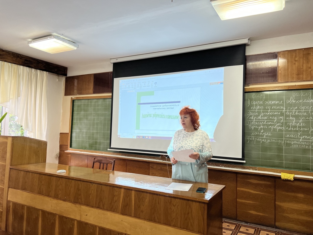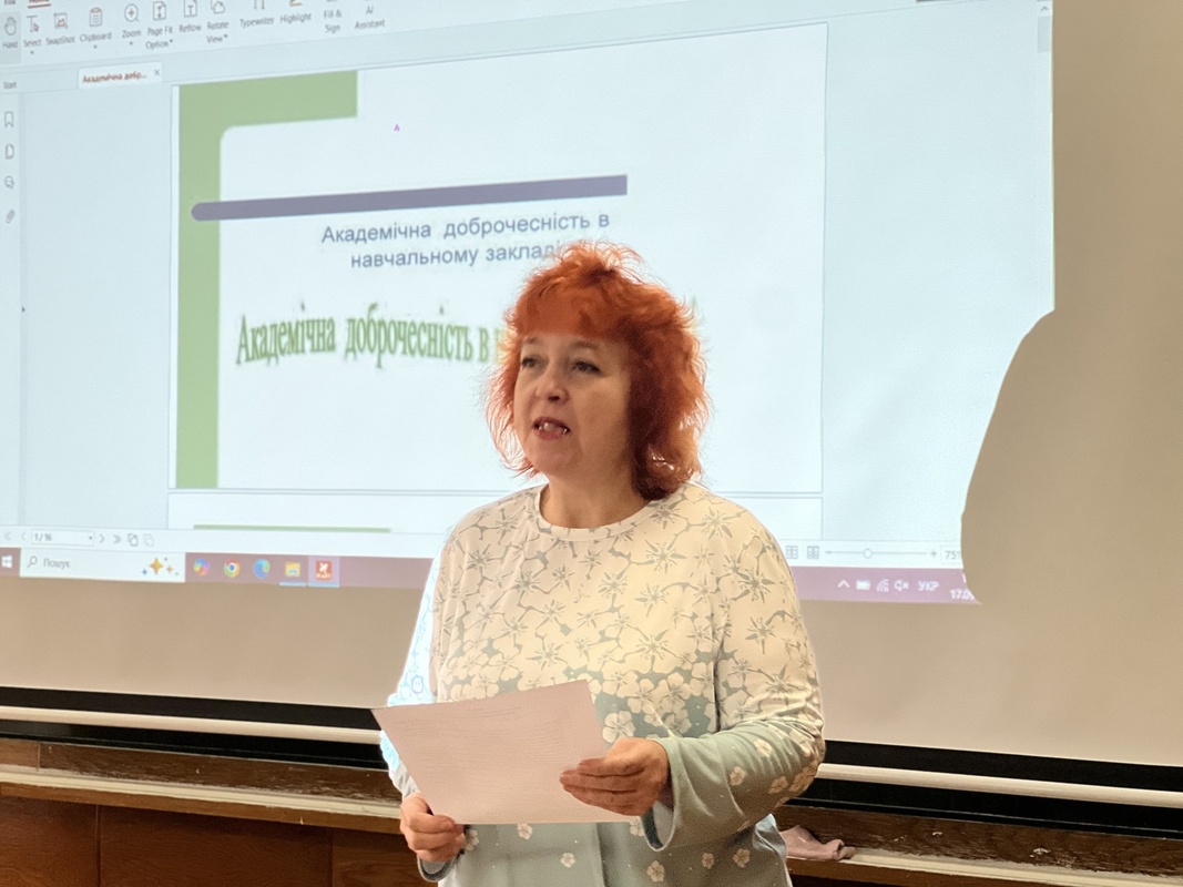 Нові члени гуртка ознайомилися з тематикою наукових досліджень кафедри біології. Керівник гуртка звернула увагу здобувачів освіти, що вже зараз починається підготовка до І етапу всеукраїнської олімпіади з різних дисциплін та студентської наукової конференції. В цьому контексті важливу інформацію учасникам освітнього процесу донесла Ірина ЛЕОНТЮК, доцент кафедри біології, яка розкрила питання академічної доброчесності.